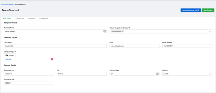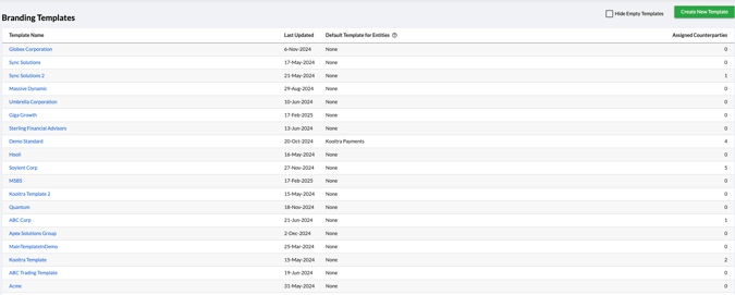 - On the Branding Templates page, click the Assign Counterparties button in the top-right corner.