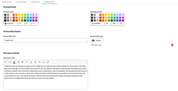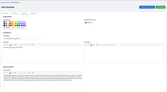 Branding templates allow you to customize logos, color schemes, and company details, ensuring consistent branding across confirmations, statements, and the trading portal. This article walks you through how to access and configure these templates.