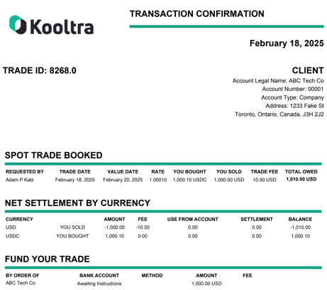 This template applies to all transaction and settlement confirmations.