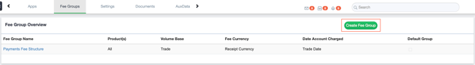 To create a Fee Group, click the Create Fee Group button, which will launch the Fee Group screen, where you can input the necessary details for configuration.