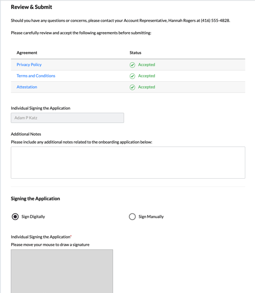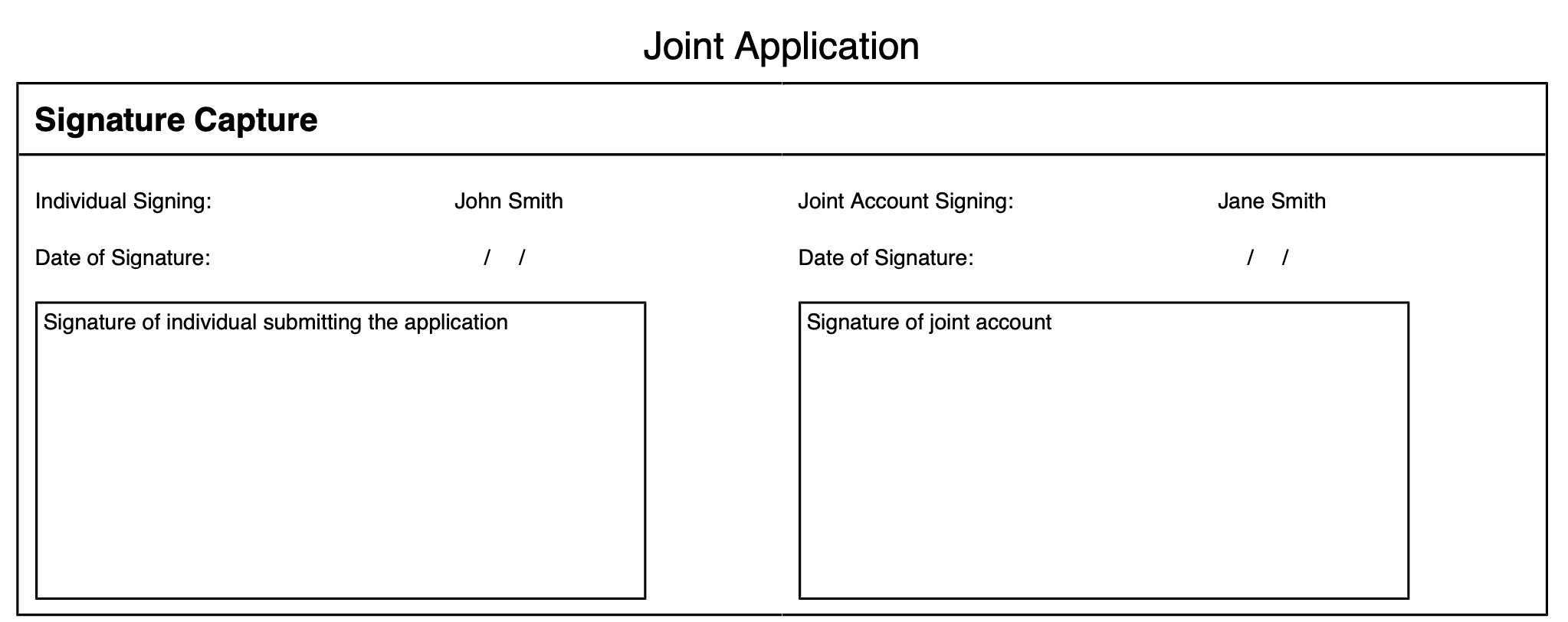Note: If your client is classified as a joint account, and both contacts need to sign the onboarding form, they must select "Sign manually". Then they'll need to click the Generate Application button, which will download the form to the client's system and populate the form with signature fields for both contacts to sign.
