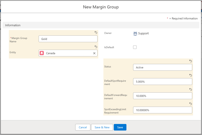 When creating or updating Margin Groups, the fields below should be specified. After making any changes, be sure to click Save: