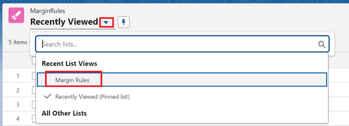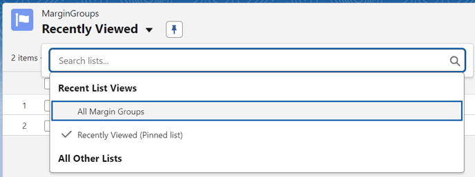 Note: In this example the list that shows all Margin Groups is called 'All Margin Groups', but the name may differ in your environment