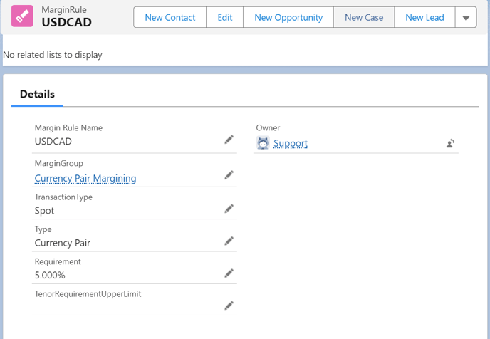 If the Margin Rule has Type = Currency Pair, the Transaction Type field must be set to 'Spot'.