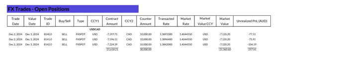 The Open Positions section displays all trades that are open and are not scheduled to settle within the specified date range of the statement.