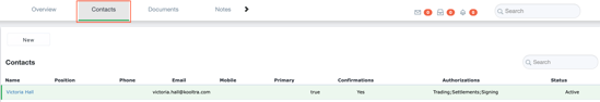 Once selected, go to the Contacts tab in the navigation panel at the top of the page. Choose the contact you want to receive the statements. This will open up the Contact Overview page.