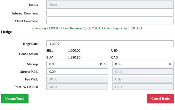 Once the fields have been modified, click the "Update" button at the bottom left of the page to save the changes to your trade.